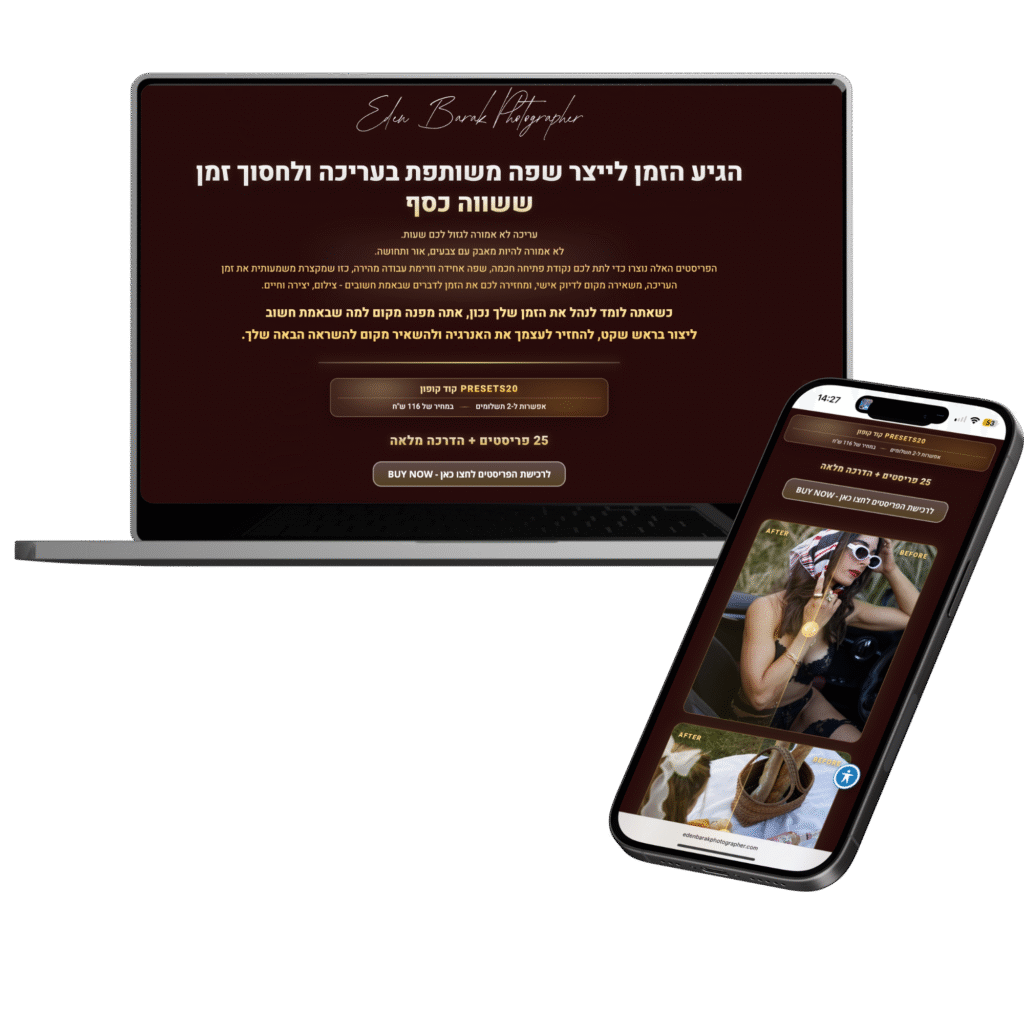 מתוך תשוקה לעיצוב והבנה עמוקה של הצרכים שלכם אני יוצרת אתרים שלא רק נראים מעולה, אלא באמת עובדים עבור העסק. השליחות שלי היא לקחת את הידע הטכני שצברתי ולהפוך אותו לצמיחה של עסקים אחרים.